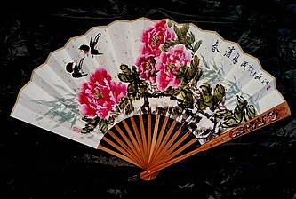 当代著名书画家 醉墨 朱毅江扇面牡丹作品
