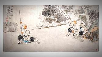 南山 中国美协会员周群(南山周君)中国功夫系列《三接棍》