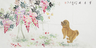 河南大学教授,河南省美协副主席,中美协会员,袁汝波 国画 迎春花开歌舞起