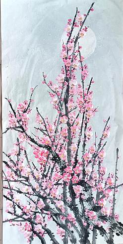 山东省美协会员 闫友会 寒枝傲雪绽丹砂
