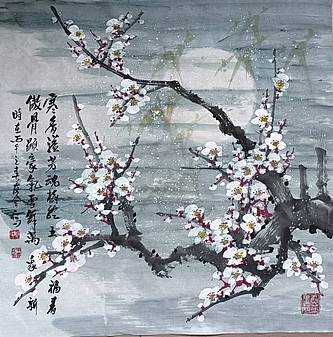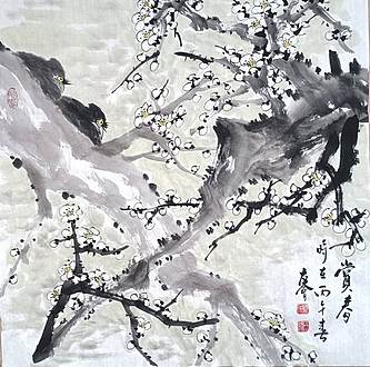 山东省美协会员 闫友会 寒枝傲雪绽丹砂