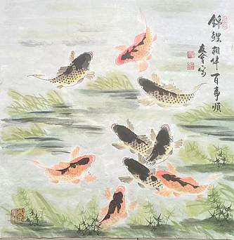山东省美协会员 闫友会 锦鲤相伴百事顺