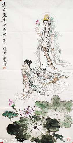 国家一级美术师 刘继兰 仕女图 国画 叶衣观音