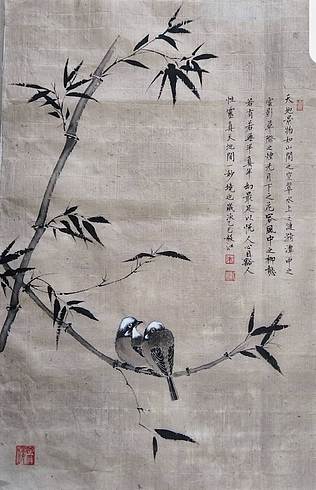 当代著名书画家 醉墨 朱毅江国画《爱情鸟》