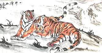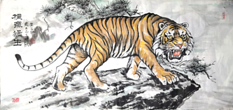樊昆仑 老虎四尺国画 横气猛生 联合国书画家协会中国分会理事