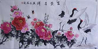 苏颖 牡丹四尺仙鹤 富贵吉祥 德州市美术家协会会员