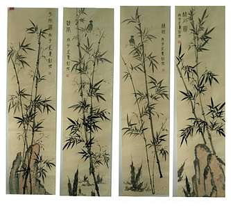 范彩君 山东德州美协会员,墨竹四条屏,洒金生宣纸