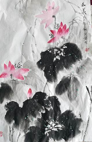 职业书画家 一念 荷花组合