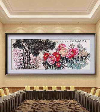 梦绘 厅堂三条屏《富贵吉祥》136×68两边对联136×34×2