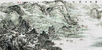 职业书画家 于恩沛 李白诗意山水《桃花流水窅然去别有天地非人间》