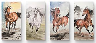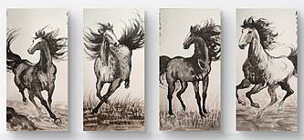 云海松涛 奔马图四连幅