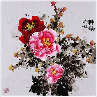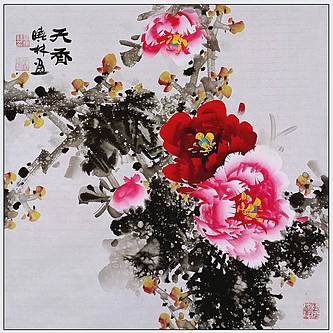 高晓林 (5495)国家一级美术师江苏省美协会员,斗方牡丹