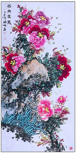 高晓林 (5352)国家一级美术师,江苏省美协会员,四尺中堂玄关牡丹