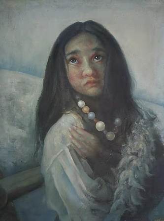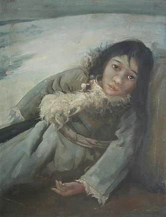 胡冰 纯手绘精品油画《女郎》