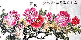 当代著名书画家 醉墨 朱毅江国画牡丹《花香情浓》100✕50厘米