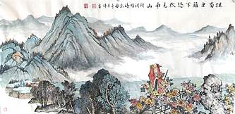 职业书画家 于恩沛 李白诗意山水《桃花流水窅然去别有天地非人间》