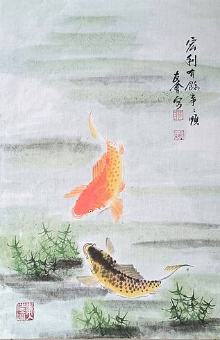 山东省美协会员 闫友会 锦鲤相伴百事顺