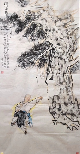 南山 中国美协会员周群(南山周君)中国功夫系列《南少林拳单鞭》