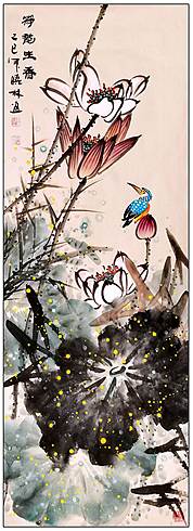 湖北美院国画系 教师,青年潜力 张廷青 荷花翠鸟